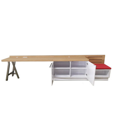 ブラシをかけられたステンレス鋼の家具製造販売業の手荷物のホールダーの線形机が付いているヒルトン・ガーデン・インの現代木の光沢度の高いパネル
